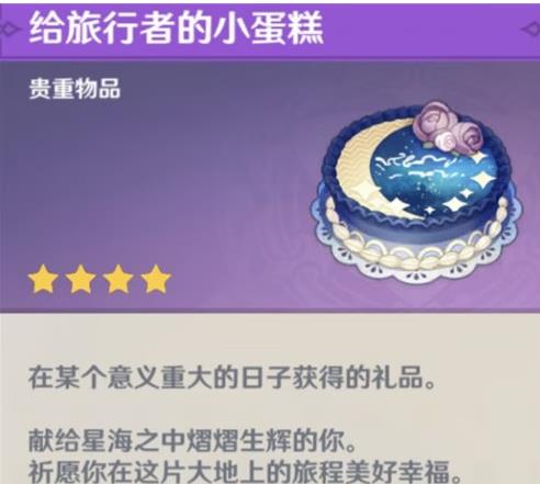 所以在生日那一天,系统就会贴心的给玩家送上生日礼物,也就是这个“给旅行者的蛋糕”。