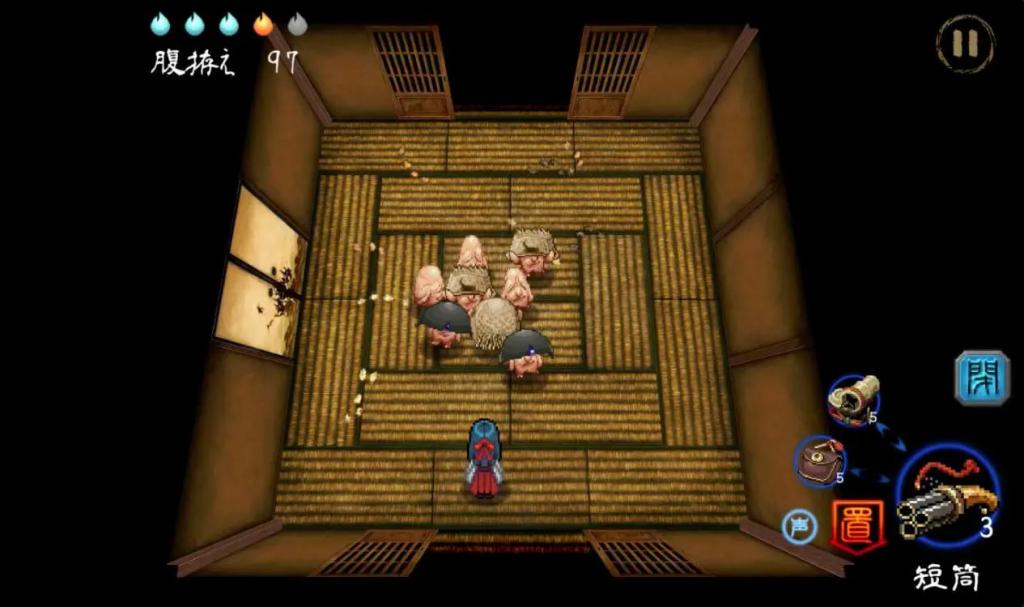 于是,他便想是否能在玩法上做出一些创新,让那些同样不擅长复杂操作的玩家也能乐在其中,这才有了《深 四目朝生 - 阴阳之巫女 -》中独特的环境和物品交互系统。在游戏中,玩家可以通过仔细地实现侦查,判断周围房间中的敌人分布情况。侦查的目标包括但不限于,具有明确方位性的声音提示、房间地板上可见的脚印或残留物,以及拉门的开合情况。