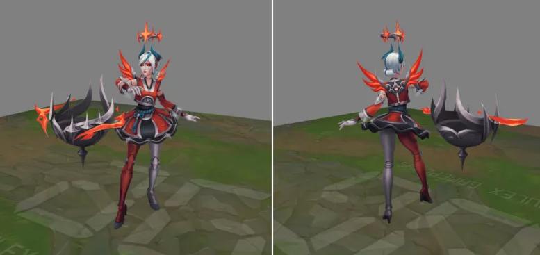 之后有海外博主,通过解包局内模型,找到了尚未公开的皮肤炫彩,而这套炫彩采用就是粉丝所说的黑红色。