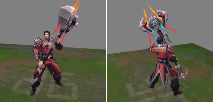 比如杰斯的锤子,按照选手的想法做成了偏向简约的设计,近战与远程的切换,也会有红蓝色的区分。
