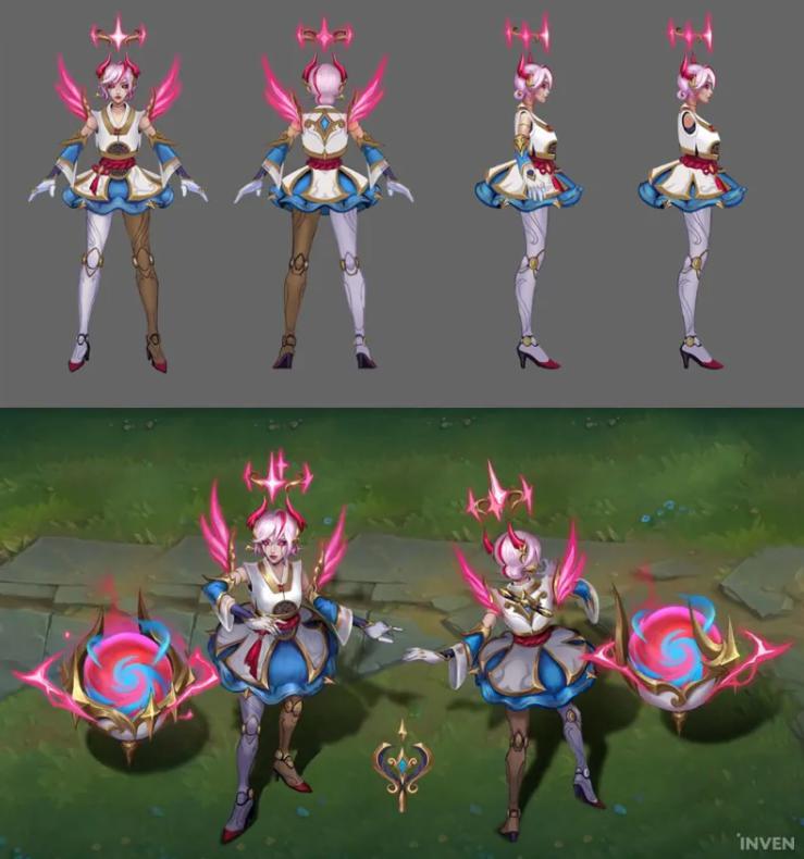 小吕布的要求只有 " 红色头发 "" 宠物嘟妮 " 以及 " 招牌动作 "。这些要素结合后的冠军皮肤,就是可爱到爆炸的回程特效。