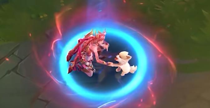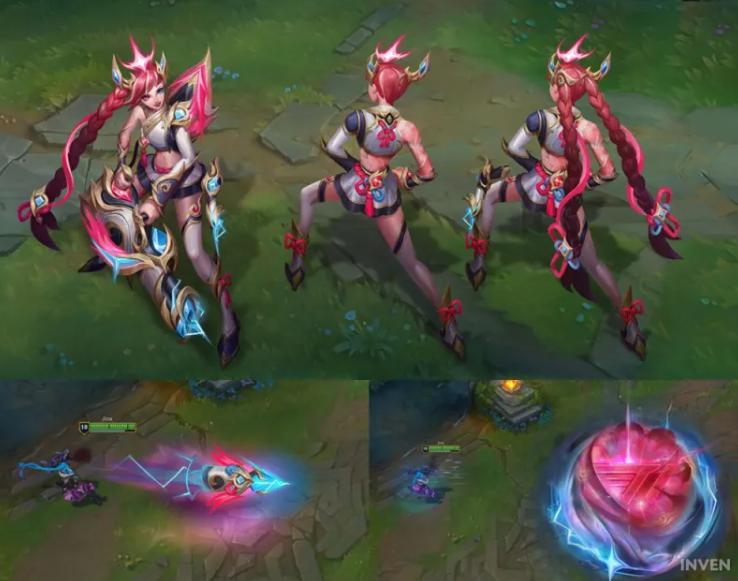 为了弥补这一遗憾,设计师在皮肤里加入了很多拉克丝的元素,比如回程特效里的拉克丝影像,还有技能特效里的拉克丝表情。