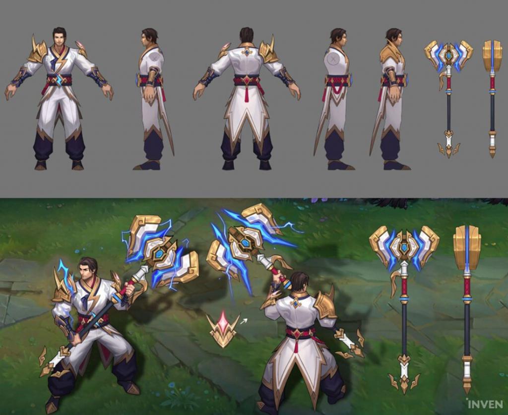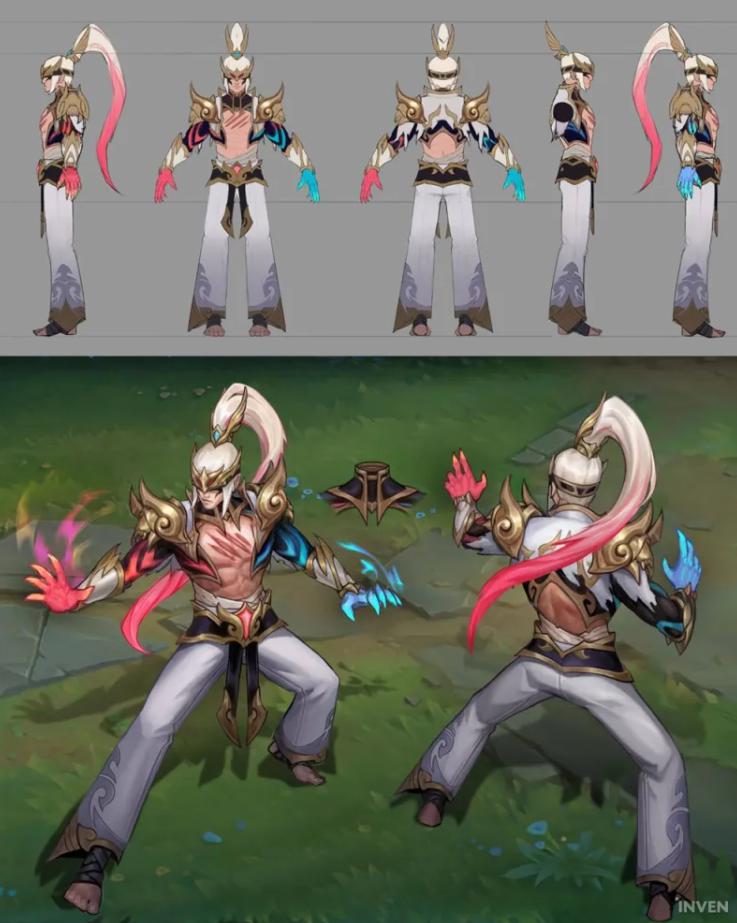 而到了打野选手 Oner 这里。因为曾经学习跆拳道的原因,Oner 要求将 " 武者 " 这一主题融入其中,所以盲僧的外观就有了类似道服的服装设计。
