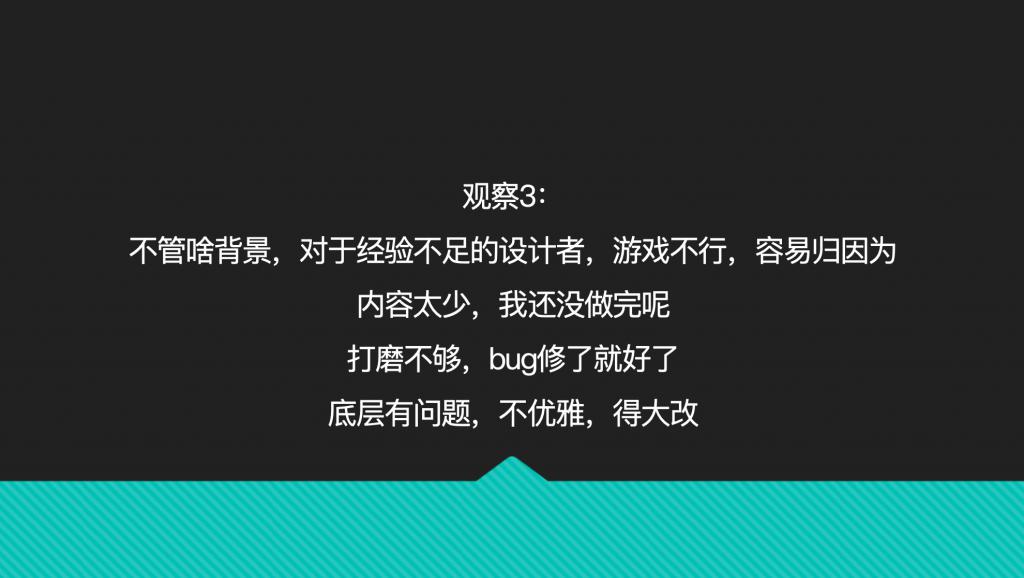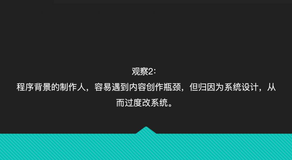 观察二,如果制作人有程序或工程背景,他很容易遇到所谓的内容创作瓶颈,但可能会错误地将问题归因为系统设计不够完善,从而倾向于反复修改游戏系统。