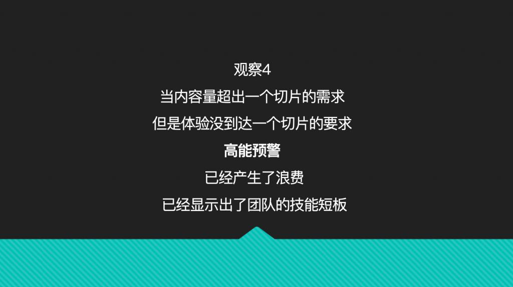 观察四:当内容量超出切片的需求,但体验未达到切片的要求时,这已经显示出过去的进展中产生了浪费,也暴露出了团队的技能短板。