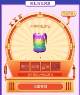 12月23日-1月10日活动期间,登录网易大神,进入《明日之后》专区,参与大神彩虹背包集结活动, 完成简单任务即可免费领取大神新版背包。
