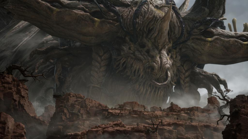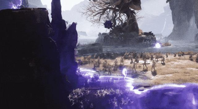 屿界的出场动画也十分震撼,它以立场扩散的方式,刷新了玩家新手期走过的、见过的各个地方,并且会在原本荒凉的地面上生成新的地貌,甚至在原本的山石之上,刷出一只威严的巨兽。