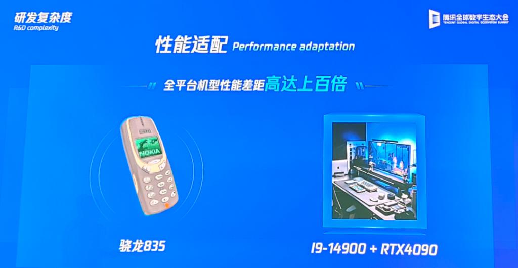 首先在全平台发行的需求下,《鸣潮》需要适配设备既有 2017 年上市、距今 7 年的骁龙 835 芯片的手机,例如小米 6;也有最新的、安装了 4090 显卡的电脑,他们之间的性能差距远超过 100 倍,如何让不同设备的用户,都能有匹配当前设备的游戏体验,对我们的技术工作提出了比较高的要求。