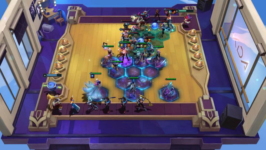 Matthew Wittrock:音乐在本赛季的玩法中有很多体现,最明显的就是各种羁绊效果。比如使用迪斯科羁绊时会出现一个很大的迪斯科球,可以提供攻速加成与回血;使用电子舞曲羁绊则会出现激光,其它弈子释放的技能也和被选择的弈子已激活羁绊有关;在强化符文的命名上,我们也参考了不同的音乐流派或风格,这些都是为了增加游戏的音乐氛围,让玩家沉浸其中。