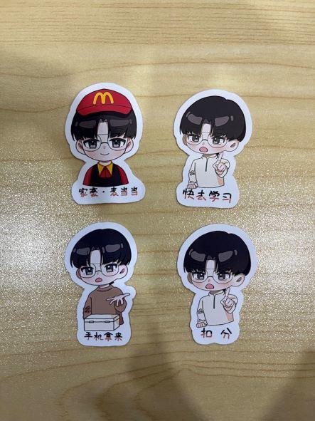 高二 B 班有不少美术生,她们为李家豪制作了一些按 " 积分 " 发放的周边