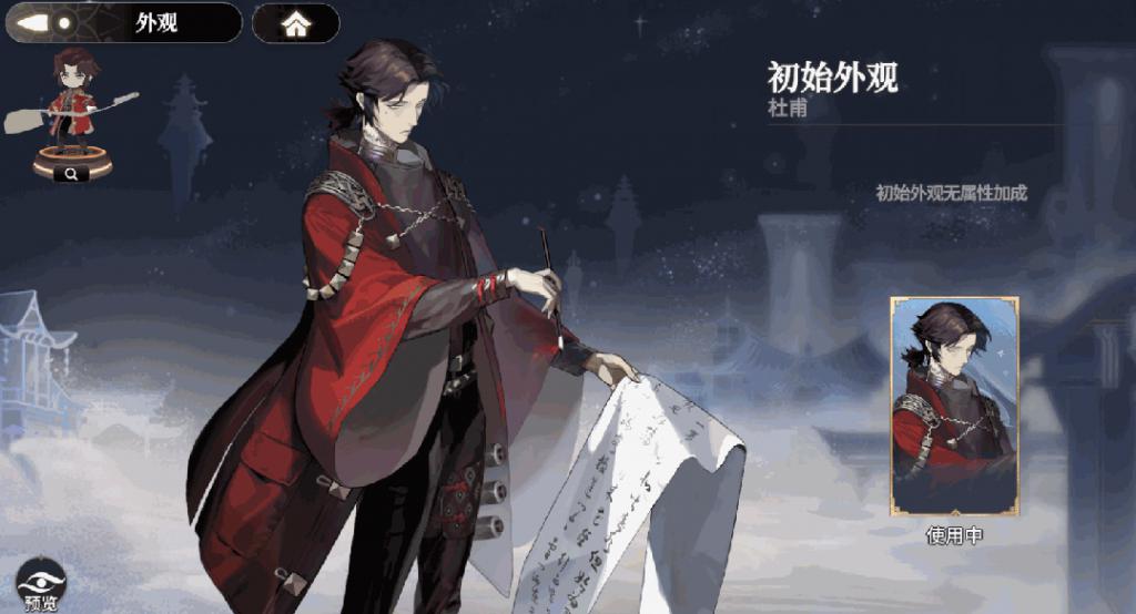 后者书写的是杜甫《客至》,在我看来这既符合了角色身份,又暗示了游戏和角色对玩家的态度:花径不曾缘客扫,蓬门今始为君开。