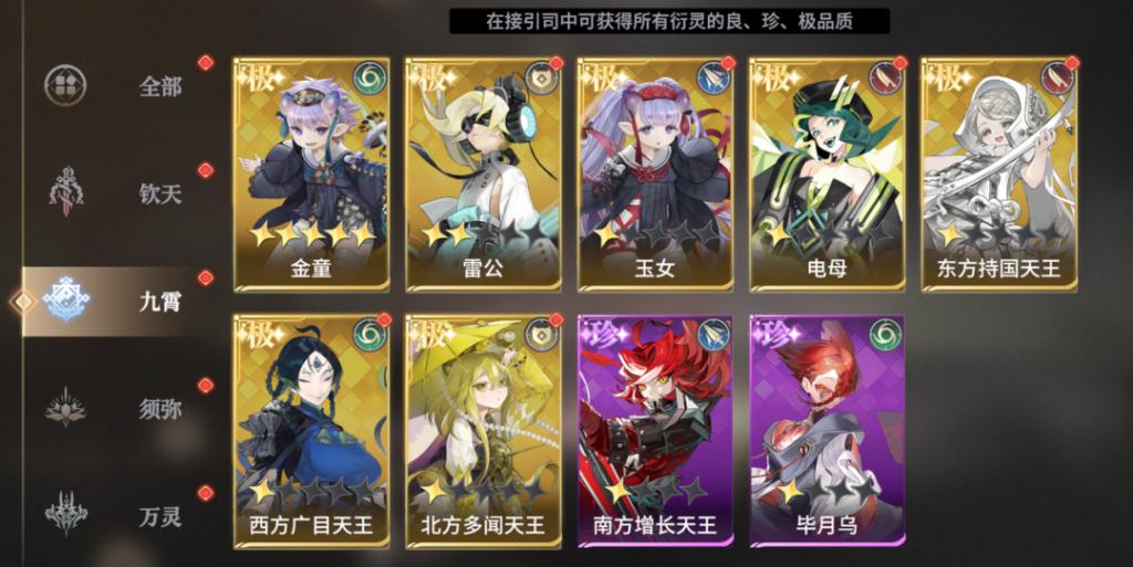 能展现这点的,是角色动态立绘的动作姿态、人设特征基本没有雷同的情况,这个设计标准在主流二游市场中相当难得。比如游戏放大了原著中「四大天王」的特征和差异,以至于连人物色系都不一样了。