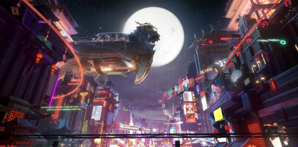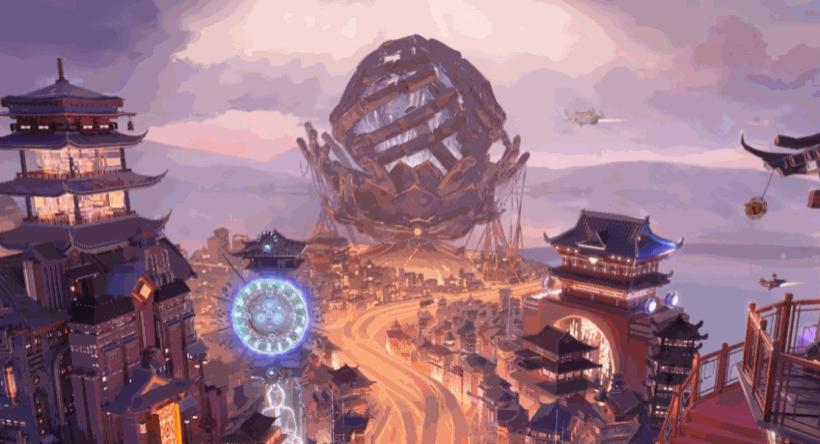 同时也会出现金色的齿轮、飞艇、霓虹灯光等赛博工业造物,整一个就是中西、古今贯通。