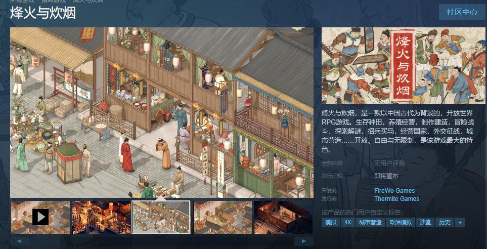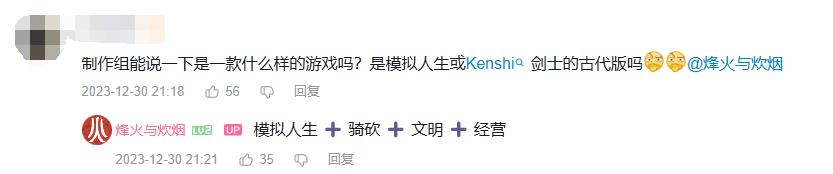 之前为了玩家方便理解,他在留言区说这一款模拟人生 + 骑砍 + 文明 + 经营的游戏。但其实这个几个游戏全加起来,他也觉得和《烽火与炊烟》的体验不太一样。