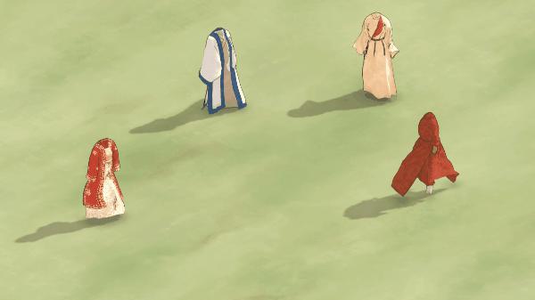 事实上,游戏在视觉上的表现力,除了整体的美术风格外,同样也有很大一部分来自技术——人物自然的行走动作,宽袍大袖的随风摆动,所有画面都是手绘且投射 UV。