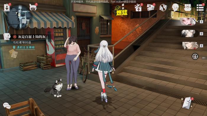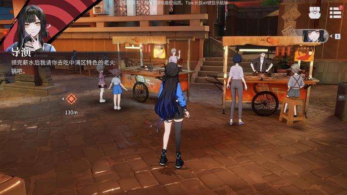 整体而言,中浦区的设计以现代为主,传统为辅。这其实也符合现实中一些城市的特征——如果重庆的渝中区空有密集的摩天大楼,没有夹杂在楼与楼间的陡峭坡道与可追溯到 30 年前的老火锅店,或许不会有大量外地游客驻足。同样道理,游戏里中浦区的公交车站设在低处路段,如果行人沿坡往上行走,可在途中见到许多卖小吃的摊位,有钵钵鸡和麻辣烫,也有往外面摆小黑板做促销活动的奶茶店。玩家在高楼间穿梭,寻找小店与有故事的人,在现代都市中感受具有怀旧味的冒险、探索感和人文情怀。