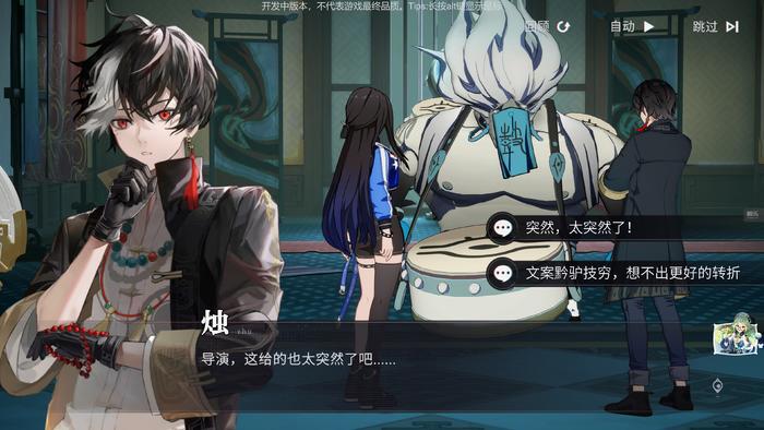 而且,《归龙潮》中的 " 跑酷 " 和剧情的体验节奏并不流畅。目前来看,《归龙潮》剧情较为丰富,CG 动画数量多,质量也不错。不过,许多同类游戏中,跑酷设计倡导的是高速与快节奏,跑酷与战斗时长较长,给玩家留下充足的沉浸空间。而在《归龙潮》的第 1 章中,玩家可能每跑酷、战斗几十秒,就要迎来一次剧情对话或者小游戏解谜。这就导致玩家在战斗、剧情两方面都难以沉浸。当然,如果开发团队在节奏方面再加调整,剧情和 CG 仍然可以成为值得一夸的优点。