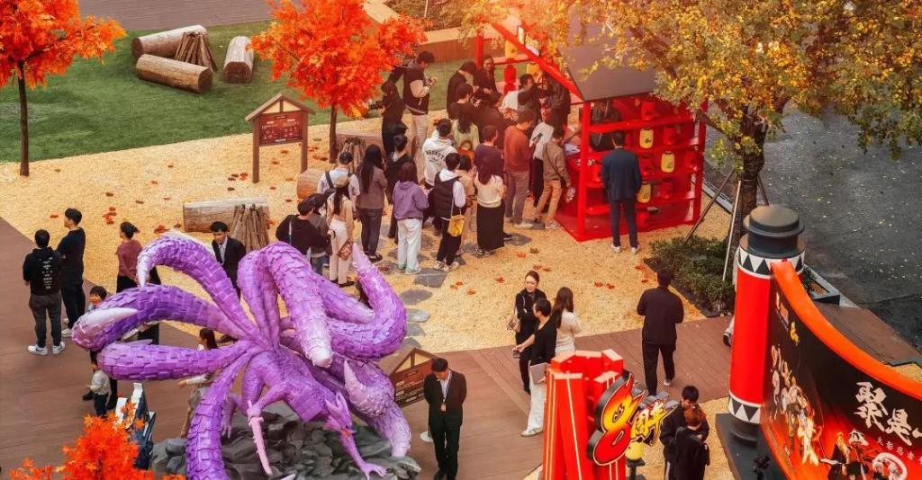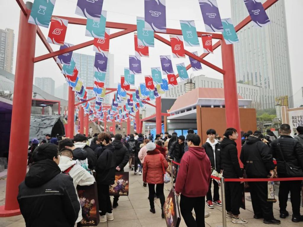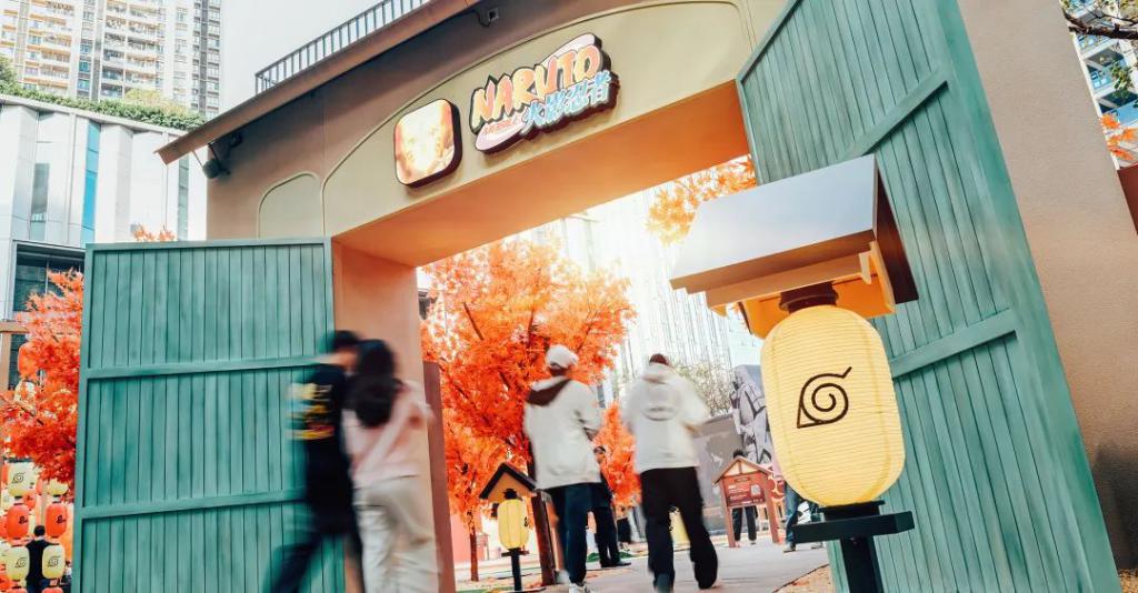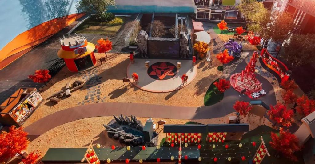 整个深圳分会场场地也被改装成了木叶隐村,村子大门、火影办公室等地标被搬进现实;