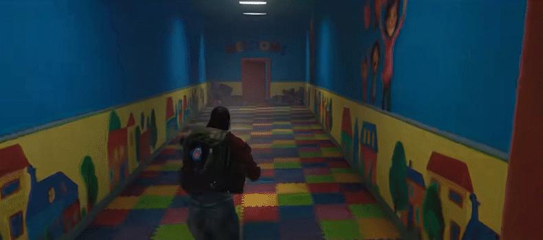 比如在收容井副本的一段场景中,斑驳的钢筋混泥土变成了色彩斑斓的儿童玩具房,荷枪实弹的敌人变成了儿时熟悉的、硕大无比的小熊小丑玩具;