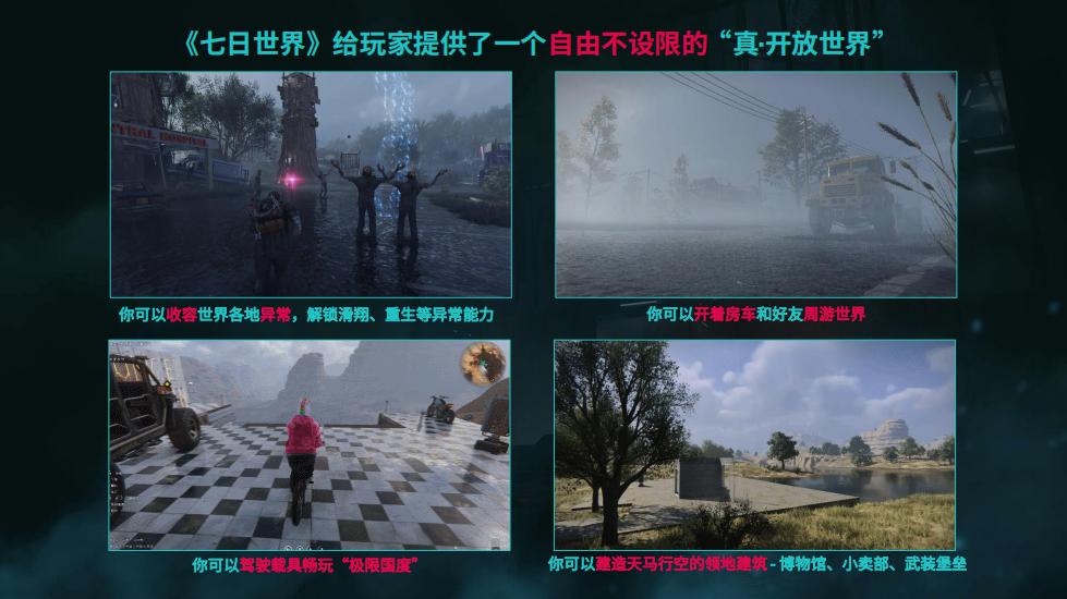 ——也就是说,《七日世界》可以靠题材做出如 " 多元宇宙 " 的剧本,让玩家不停进入探索的游戏体验,在每一个赛季重新学习世界的规则和内容……战斗环境、副本词条、社交环境,乃至全新的地形地貌,都会有所不同。