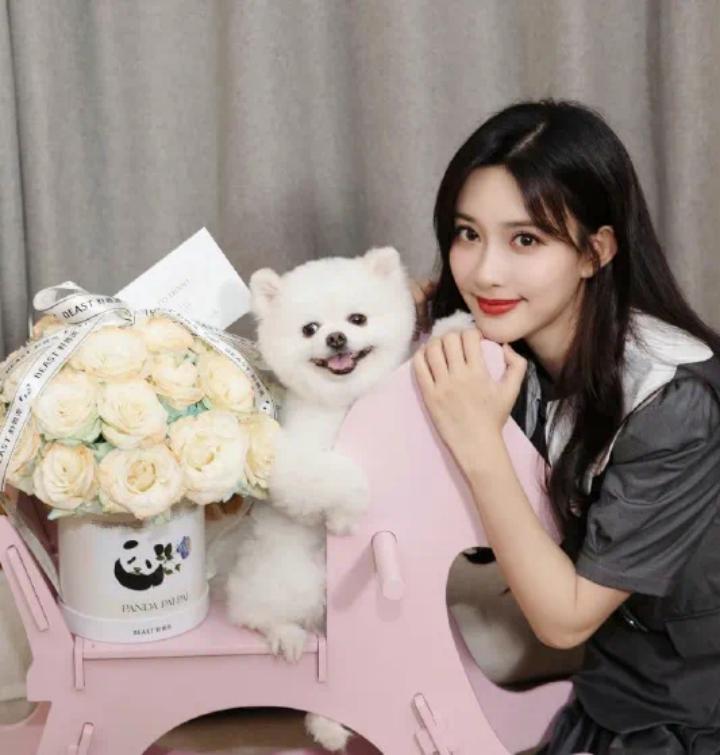 其中一张照片的秦霄贤怀里还抱着一只小狗,