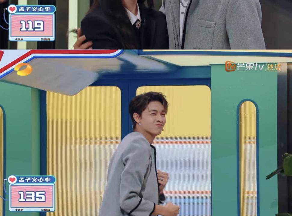 第一次同框(指路第20220827期),在孟姐玩游戏时,他就一直盯着,