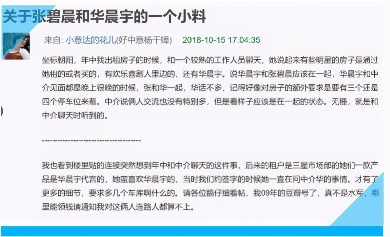 2018年,有房产中介人爆料,华晨宇和张碧晨曾一起租房子,貌似在交往。