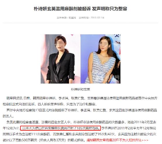 据韩媒报道,她自 2011 年初开始,就注射了 185 次麻醉药品。