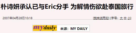 朴诗妍受的情伤不小,为此还停下工作去了泰国疗伤。