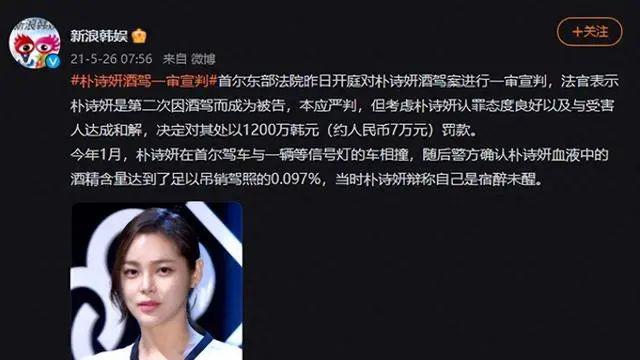 此外,2021 年,朴诗妍还因为涉嫌酒驾被吊销驾照,罚款七万人民币,又引来中韩网友的众怒,如今的她已经从曾经的国民白月光,变成饭粒子了……