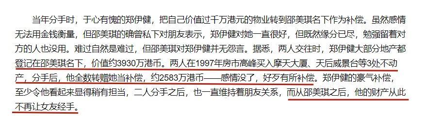 当时有杂志报道,与邵美琪分手之后郑伊健选择“净身出户”,