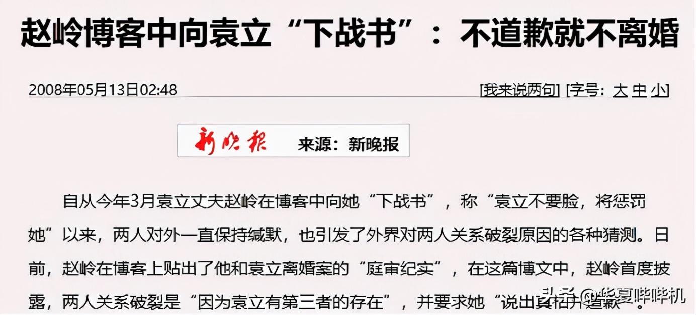 但赵岭不甘心被外界这样谩骂,于是他在袁立提出离婚后,直指袁立劈腿。