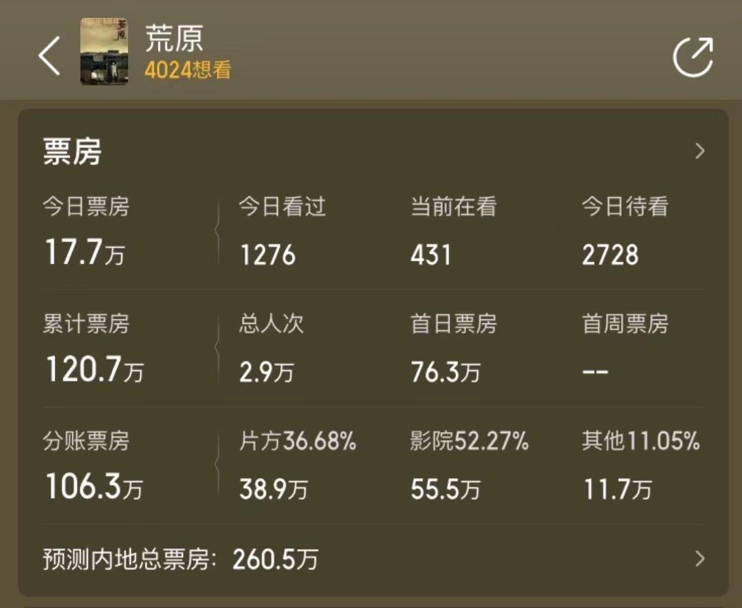 不过网友对他这个身份的不认可,已经通过《荒原》的惨败体现了。