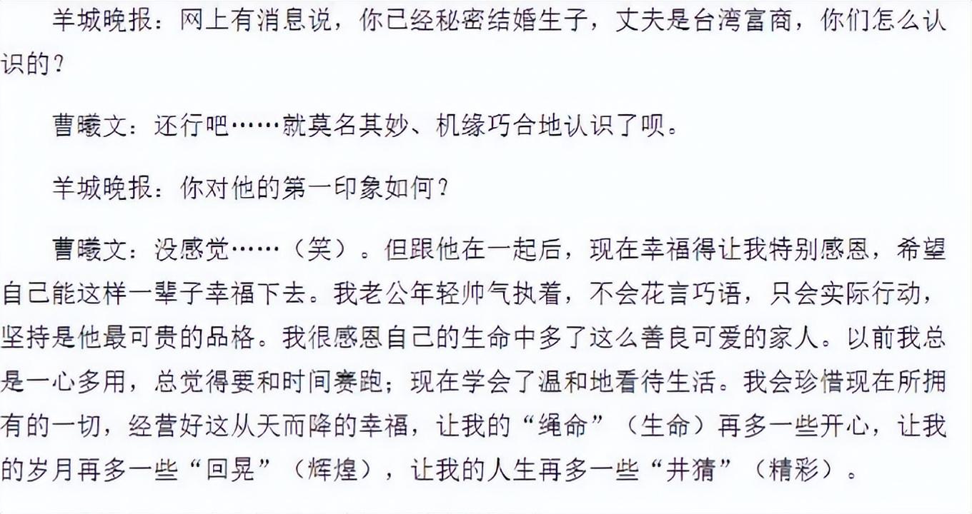 对于未来的感情,曹曦文也不抵触,她说:“自然也希望以后能找到幸福。”