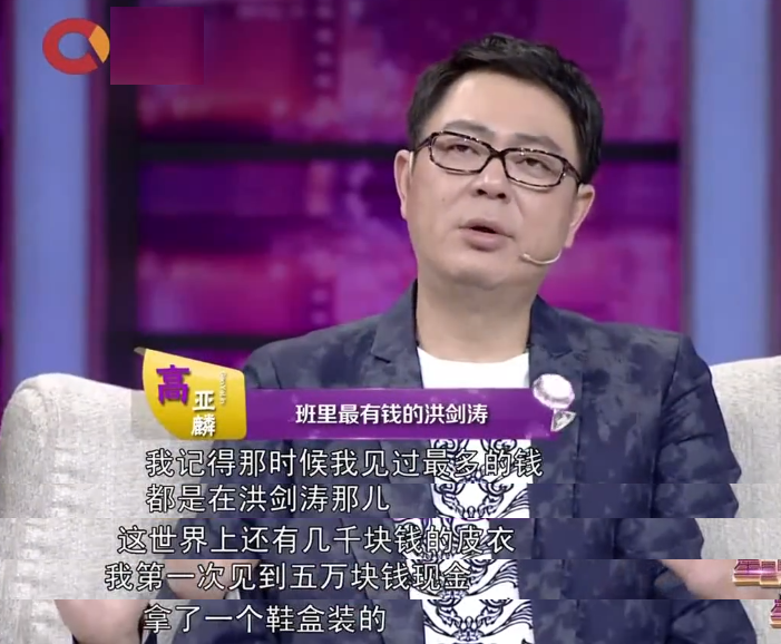 演员洪剑涛,家境优越,上大学时就开公司,九十年代初期,万元户还很稀少的年代,洪剑涛就穿着1500块的貂皮大衣,拿着鞋盒子装5万块现金,同学们吃饭都是洪剑涛买单。
