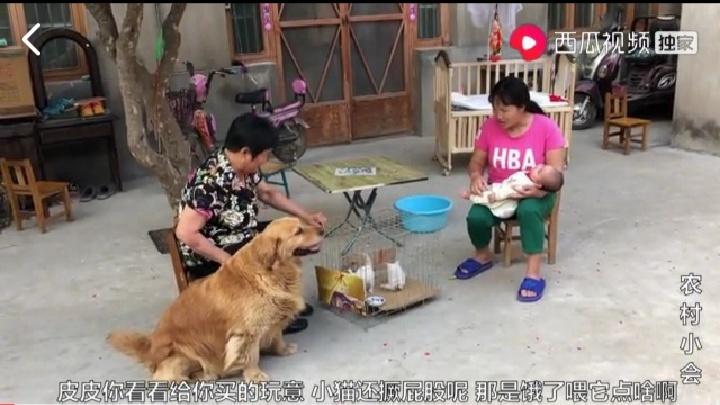 婆媳俩的视频最大的看点就是那条叫皮皮的金发犬了!