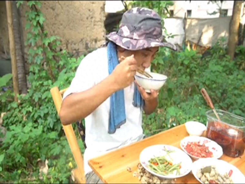 为了吃一只叫花鸡,他专门上山,从一大群散养鸡里抓出一只最好的,然后驱车前往好几公里外的瀑布下,杀鸡烫毛。