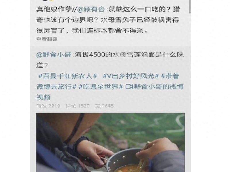 原来,首都师范大学生命科学学院副教授、植物学家顾有容转发了他的视频,并配文:“猎奇也该有个边界吧?水母雪兔子已经被祸害得很厉害了,我们连标本都舍不得采。”