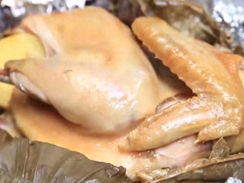 一切准备好之后,他挖出烤好的叫花鸡,金黄嫩滑的鸡肉看得人口水直流。