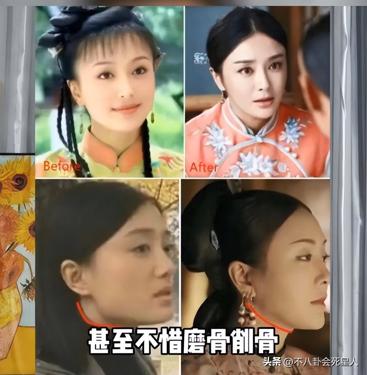 可能也是这个原因,秦岚走上了动脸新征程。冻龄效果是有了,不过日渐僵硬的脸和突显的脸部埋线,显得有些得不偿失了。