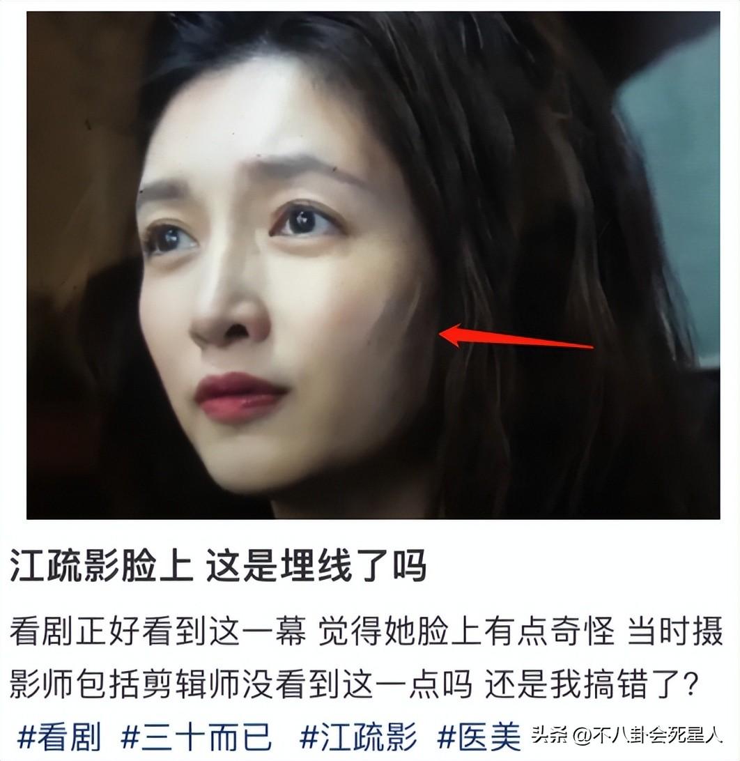 之前也有人发现,江疏影在《三十而已》里的脸,也有怪异的线条,被网友怀疑也是做了医美的后遗症。