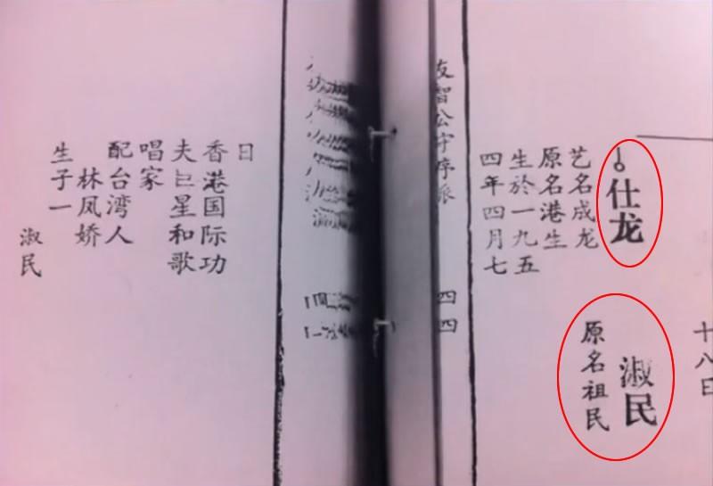 在房氏族谱上,成龙的名字是房仕龙,跟大哥房仕德、二哥房仕胜的名字只差一个字。