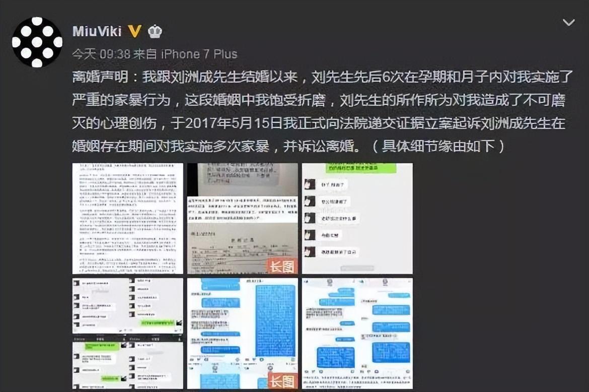 2017年,刘洲成妻子突然宣布离婚,并且控诉对方6次在孕期和月子里家暴,对自己身心造成了不可磨灭的伤害。