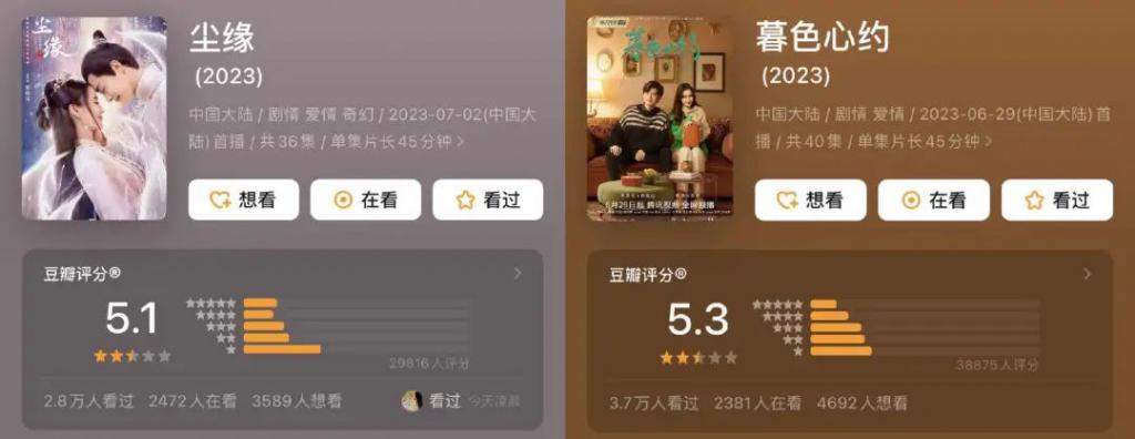 今年播出的《暮色新约》和《尘缘》都扑得毫无水花。