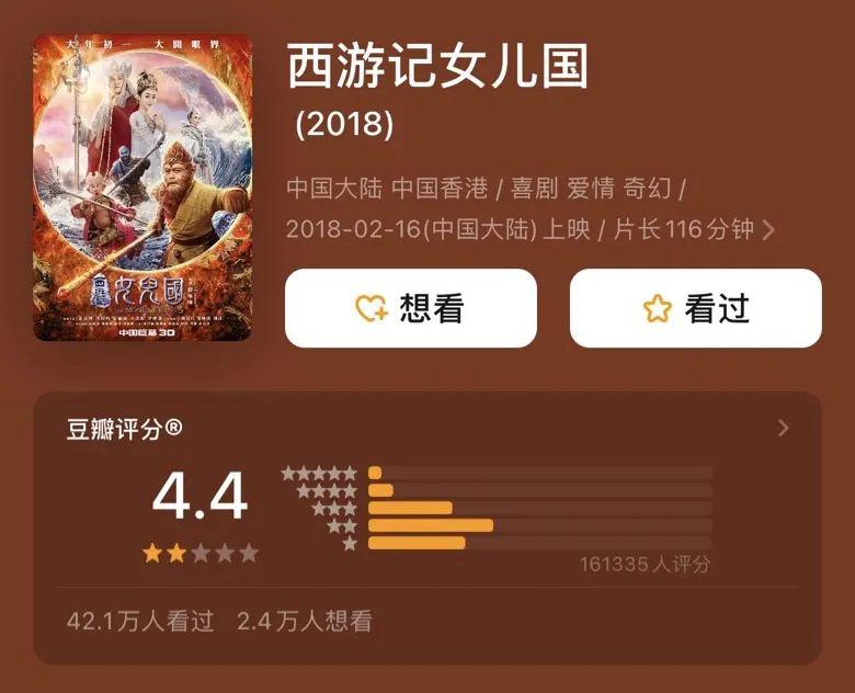 最近的电影,还是 2018 年上映的《西游记女儿国》。