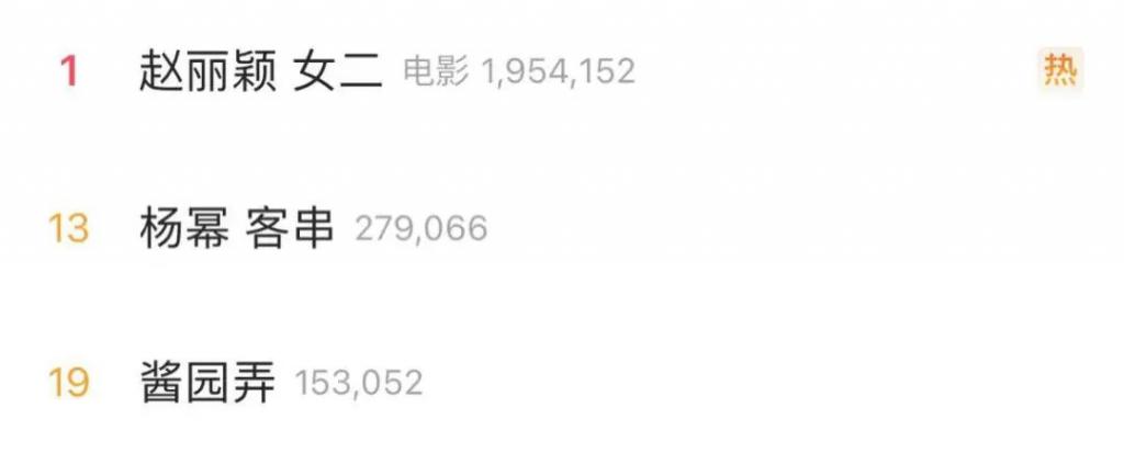 热搜上," 杨幂 "、" 赵丽颖 "、" 女二 "、" 酱园弄 " 开始以排列组合的形式不断出现。
