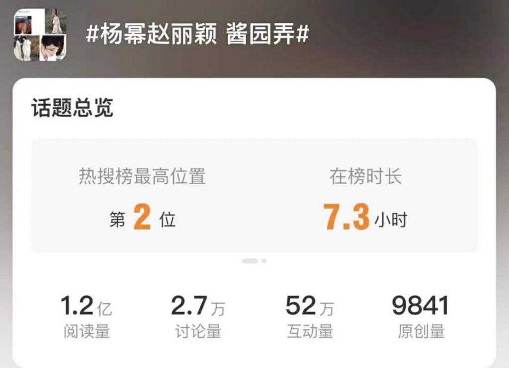 话题 " 杨幂赵丽颖 酱园弄 " 阅读量高达 1.2 亿