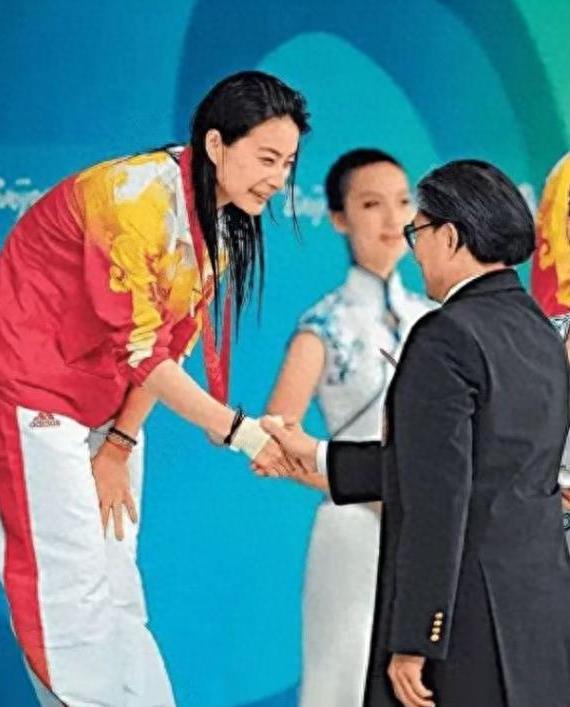 08 年北京奥运会,霍震霆给郭晶晶颁奖,