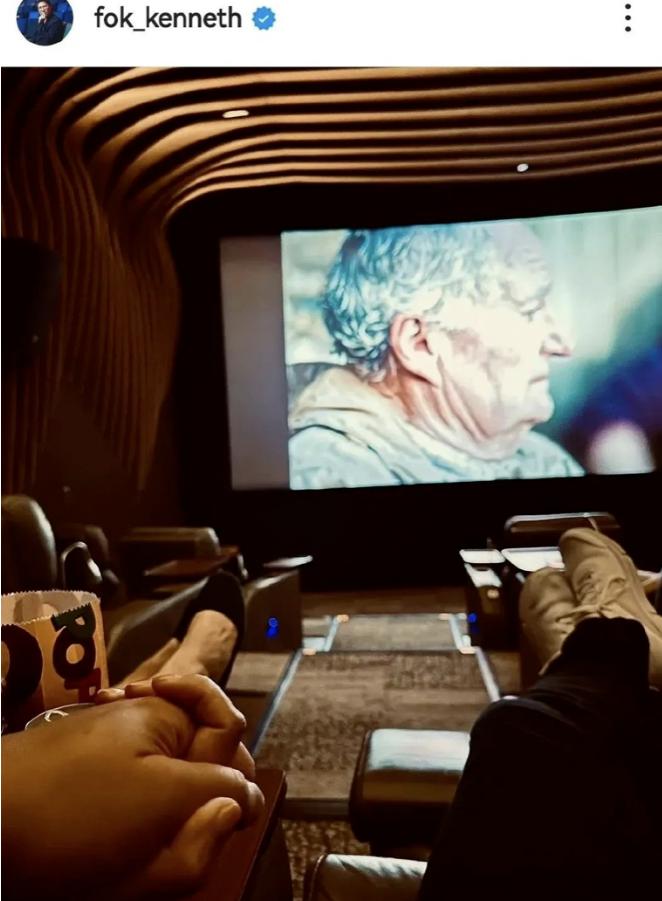 前几天,郭晶晶和霍启刚结婚 11 周年纪念日,两口子手牵手躺着看看电影——