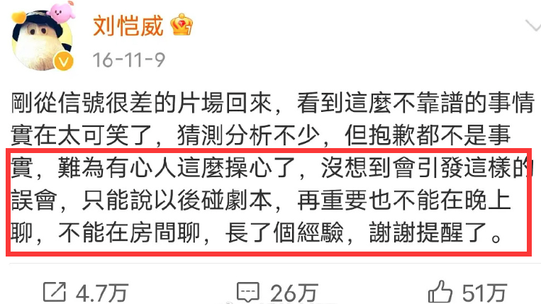 之后卓伟坚称报道无误,让王鸥刘恺威彻底被贴上了“夜光剧本”的 标签。